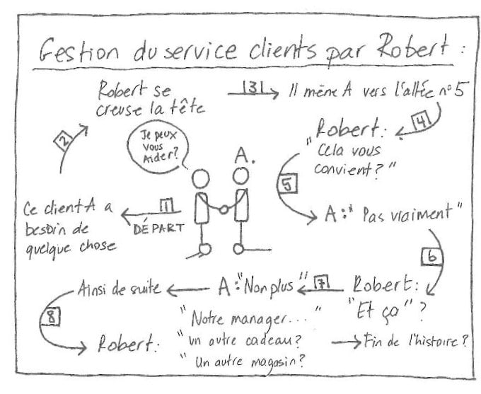 - chaque membre doit ensuite dessiner la perception qu’il a des responsabilités de son binôme sans jamais lui poser de question directement. Il ne peut utiliser que des symboles ou des dessins ;