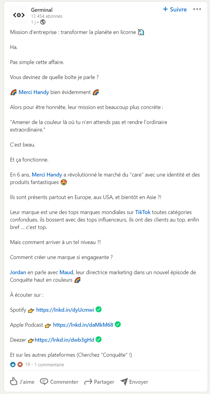 Dans certaines industries, la publication sur LinkedIn de contenus racontés se substitue à de la prospection (téléphone/mail) ou à de la publication d’articles sur un blog. La force de LinkedIn est telle qu’elle vous offre un grand espace de liberté dans lequel gambader.