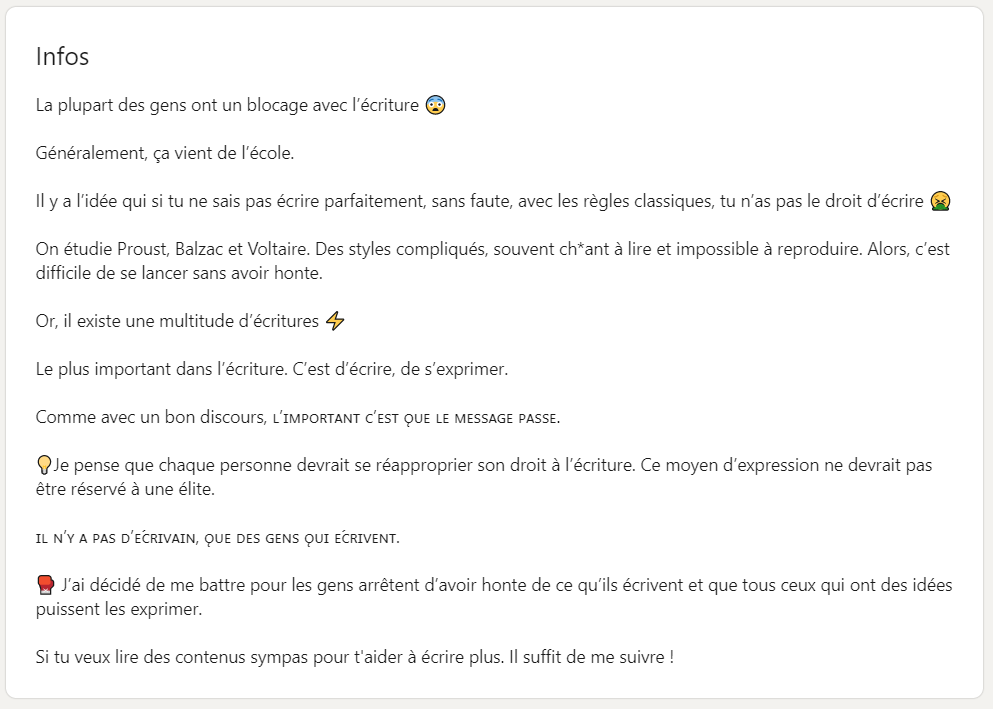 - Rédigez sur un brouillon votre post comme vous avez l’habitude de le lire ou de l’écrire ;