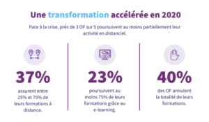 Lorsque leurs apprenants étaient trop réticents ou que les formats n’étaient pas adaptés, 40 % des organismes de formation ont préféré se mettre en pause le temps de réfléchir à une stratégie.